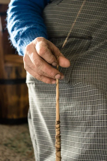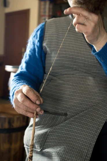 Enquanto se fia, a maçaroca de lã vai crescendo no fuso. Para evitar que se desfaça quando começa a ficar muito grande, a D.Benta tem um pequeno truque para a ajustar.