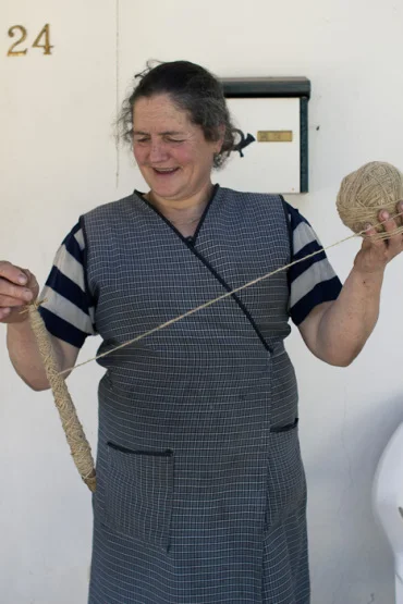 O trabalho da D.Benta é especial porque é ela que, desde que nasce uma ovelha no seu rebanho até fazer um par de meias, controla todas as fases do ciclo da lã.