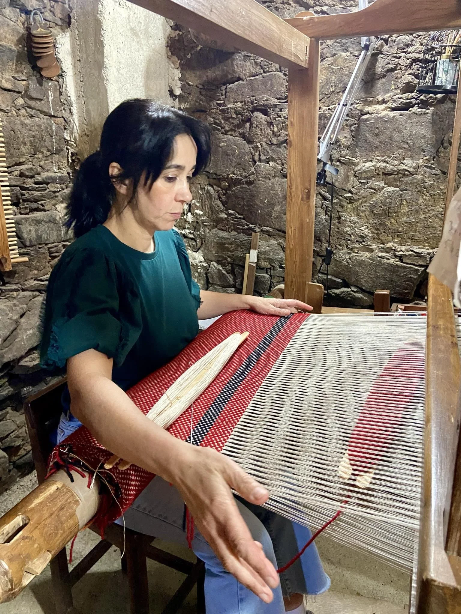 A Sandrina na formação de tecelagem em Vinhais, em 2022.